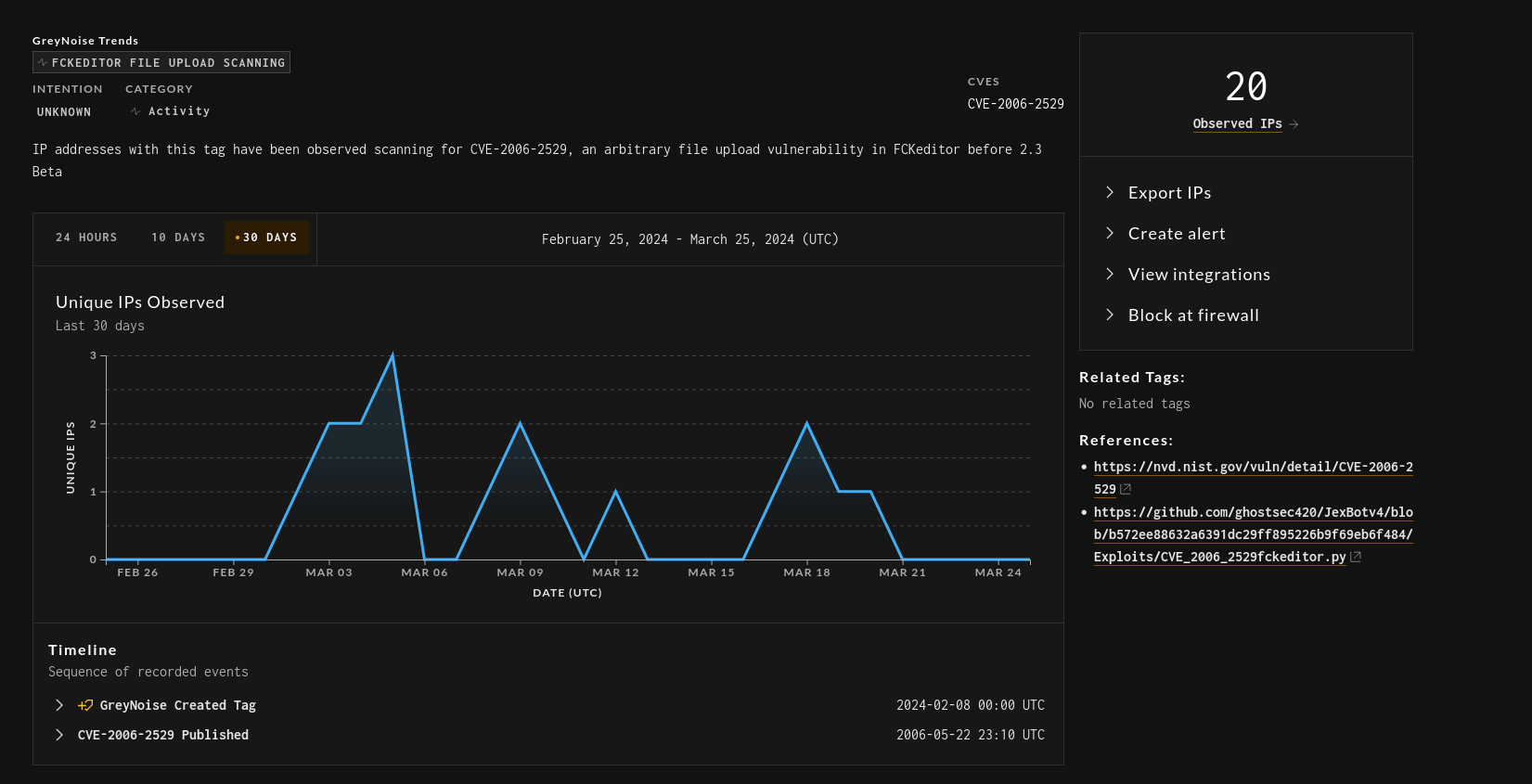Eventually, when looking through the proof of concept code, firewall log pages and git repos, you’ll get a feel for what the vulnerability is. In this case, it’s CVE-2006-2529.