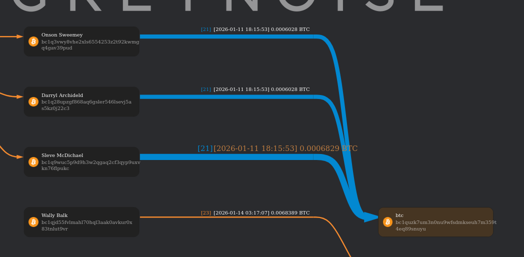 On January 11th, the wallet labelled “btc” gets $45-$50 each from Onson Sweemey, Darryl Archidald and Sleve McDichael. Why is it all at the same time?